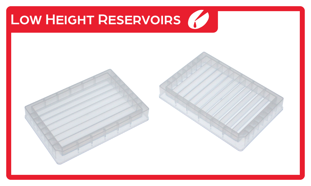 | RES16MC-8-NS-IW | Reservoir, Mid Height, 8 Channel, 144mL, Natural, Sterile | 10 / Case | $125.00 |