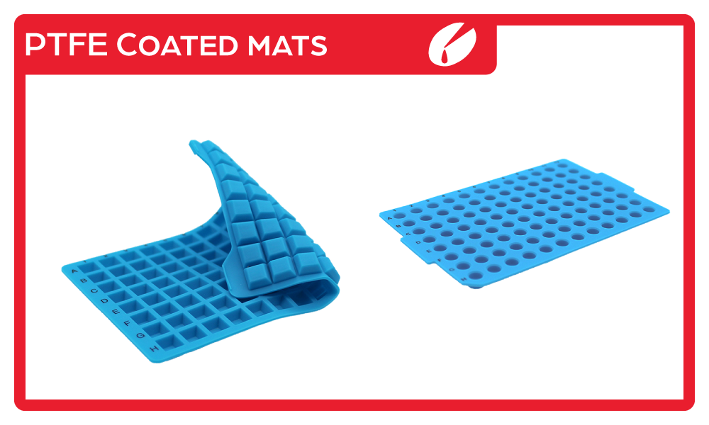 | MAT-SQ-96-PTFE | Sealing Mat, Ø8.5mm, Square, 96 Well, PTFE-Coated Silicone, Printed Alphanumeric, Blue, "-" Opening | 50 / Case | $305.00 |
